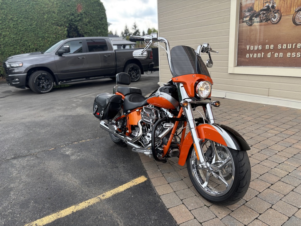 magnifique cvo softail convertible 2010 avec seulement 21984 km moteur 110 pc 6 vitesse ,carénage détachable, crash bar avec phare auxiliaire , roues, fourche et contrôle chromer , exaus 2/1 supertrap , ape 14 pouces ,toile de remisage cvo , valise hd détachable , siège et dossier passager détachable,alarme Harley , a voir un vrai bijoux et le financement est disponible !