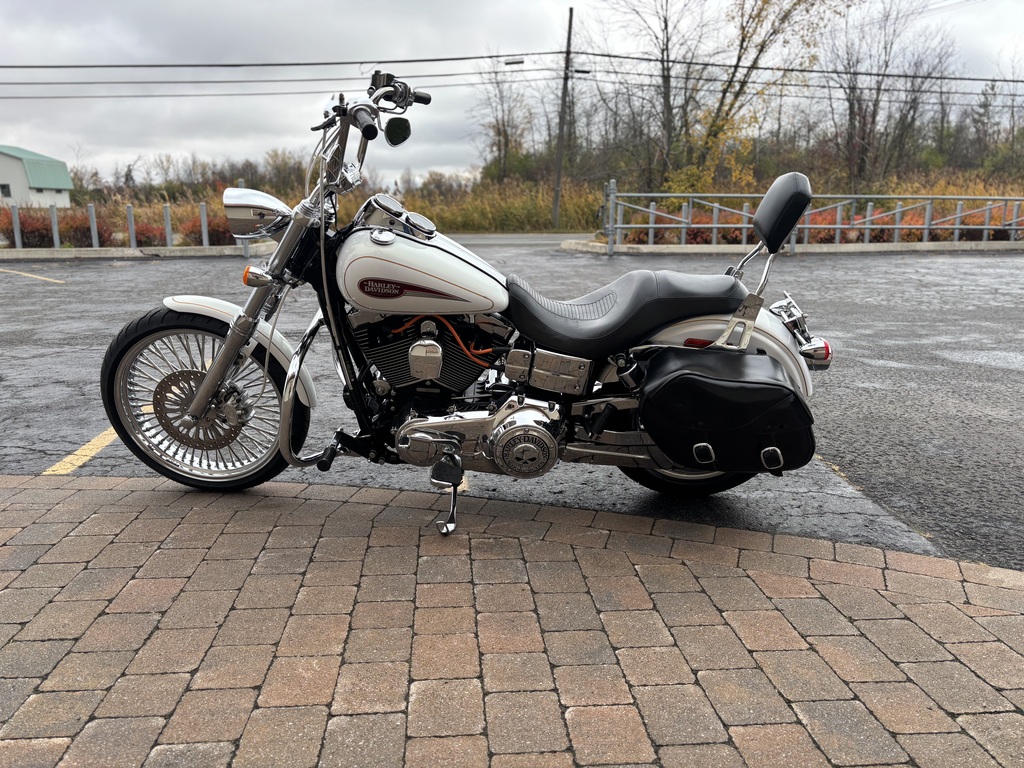 magnifique dyna low rider 2008 avec seulement 78042 km , stage 1 complet avec entre d air screaming eagle , roue av 21 x3.25 , fourche contrôle et swingharm chromer , mini plate forme et repose pied avant , mini ape , alarme Harley , crash bar , dossier passager et valise détachable a voir et le financement est disponible !