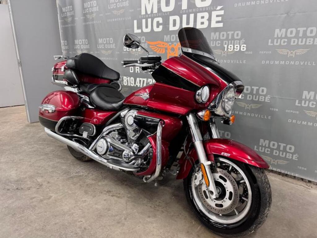 Kawasaki Voyager 1700 ABS 2010 57 841 KM, FREINS ABS ET COMBINÉS, PARE-BRISE FUMÉ, ORDINATEUR DE BORD, CRUISE CONTROL, PHARES-AUXILIAIRES, HAUTS-PARLEURS ARRIÈRES, Nous offrons une garantie de 30 jours ou 1 700 km. Garanties prolongées disponibles jusqu’à 5 ans — informez-vous! Financement disponible à taux compétitifs. Programme de rétablissement de crédit : 2e et 3e chance au crédit. * We speak English as well * Moto Luc Dubé, une entreprise familiale à votre service depuis maintenant 30 ans. Situé à Drummondville, au carrefour des autoroutes 20 et 55, à mi-chemin entre Montréal, Québec, Trois-Rivières et Sherbrooke.