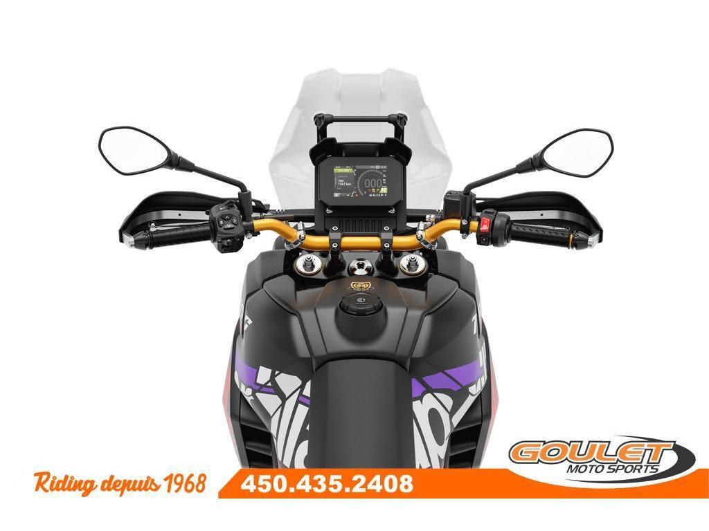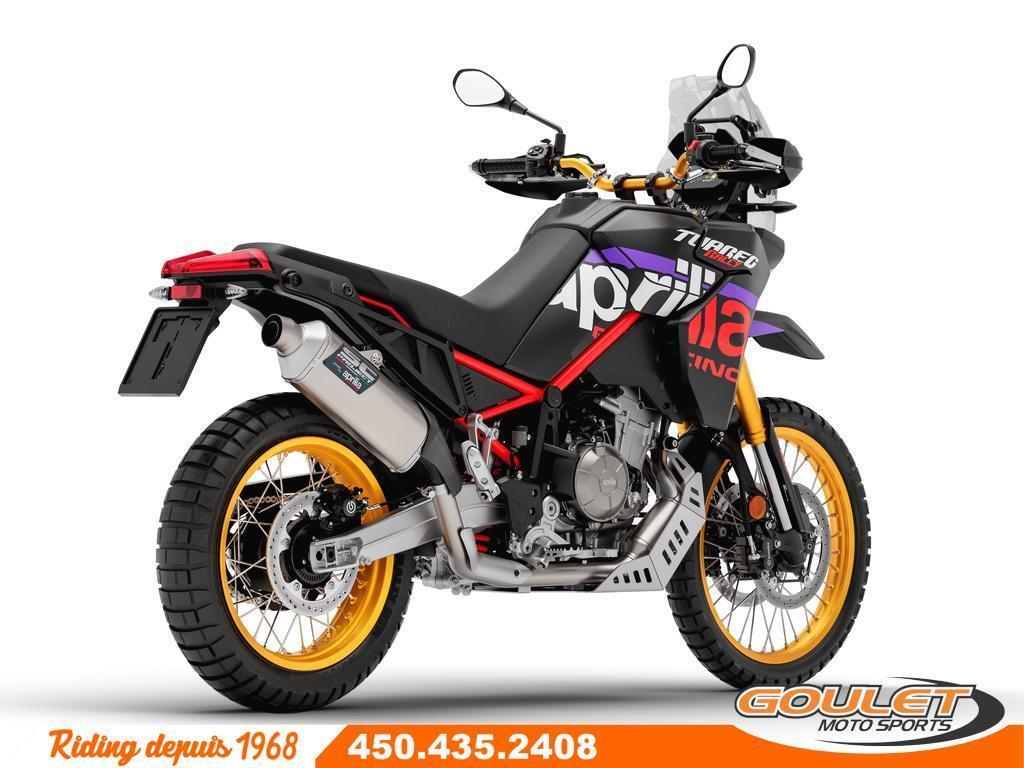 APRILIA TUAREG 660 RALLY 2026 \*\*\* FRAIS DE TRANSPORT ET PRÉPARATION INCLUS DANS LE PRIX \*\*\* La Tuareg 660 trace une nouvelle voie, offrant des performances de référence dans toutes les conditions et un équipement d'aventure authentique. Avec un poids à sec de 187 kg seulement, la Tuareg 660 Rally constitue une référence dans le secteur en termes de légèreté. - Nouveau moteur amélioré : Bicylindre de 659 cm³ développant 80 chevaux et 70 Nm de couple, offrant des performances accrues. - Suspension haut de gamme amélioré : Fourche inversée Kayaba de 43 mm et mono-amortisseur arrière à tringlerie progressive avec débattement de 240 mm. - Ailes avant et carénage optimisé : Nouvelle aile avant intégrée, améliorant l'aérodynamisme et la stabilité à haute vitesse, tout en offrant une protection accrue contre les intempéries et la boue. - Échappement SC Project : Système d'échappement haute performance SC Project titane pour une sonorité distinctive et un gain en performances. - Modes de conduite avancés : Quatre modes de conduite, dont deux personnalisables, adaptés pour une conduite optimale sur route et tout-terrain - Système APRC de dernière génération : Contrôle de traction ajustable, contrôle du frein moteur et cartographies moteur optimisées pour un contrôle précis dans toutes les conditions. - ABS déconnectable : Permet de désactiver l'ABS sur les deux roues ou uniquement à l'arrière, facilitant la conduite sur des terrains difficiles. - Écran TFT couleur de 5 pouces : Affichage clair et précis, avec connectivité Bluetooth pour une navigation en temps réel et un suivi des informations essentielles. - Design robuste pour l'aventure : Nouveau carénage renforcé et protections supplémentaires, offrant une meilleure résistance aux conditions extrêmes. - Nouvelle roues: Roues plus robuste en ergal avec chambre à air. Cette unité est chez Goulet Moto Sports de Ste-Thérèse. Téléphonez au 450.435.2408 Possibilité de financement avec plusieurs institutions financières. 2ième chance au crédit disponible. Taux d'intérêt Aprilia spéciaux disponible sur PDSF Goulet Moto Sports est votre concessionnaire moto depuis 1968. Fier représentant officiel des marques HONDA, APRILIA, MOTO GUZZI, VESPA, PIAGGIO, KTM, NIU, SURRON et URAL pour le grand Montréal. Nous avons un énorme choix de moto usagés inspectées par nos professionnels. 2 adresses pour vous servir, soit à Sainte-Thérèse (450.435.2408) et Saint-Jérôme (450.431.6622). Goulet Moto Sports ne peut être tenu responsable d'une omission, d'un délai ou d'une erreur de transcription de l'information. Le prix affiché reflète la condition de l'unité. Pour différentes raisons les prix peuvent différer de ceux indiqués en ligne. Les données sont affichées à titre indicatif seulement et ne peuvent être considérées comme une information contractuelle. Nous vous encourageons vivement à nous consulter pour plus de détails avant de vous déplacer. Des frais tels que taxes, immatriculation, administrations ou autres peuvent s'appliquer. Se compare à Yamaha Tenere T7, KTM 890 Adventure, BMW F 850GS ou la Triumph Tiger. Essence, Transmission: Manuelle, 6 vitesses, Système de refroidissement: Refroidi au liquide, 2 cylindres, 80.0 CV, 660.0 CC, Garantie: 2 ans ---------------------- APRILIA TUAREG 660 RALLY 2026 TRANSPORT AND PREPARATION INCLUDED IN THE PRICE The Aprilia Tuareg 660 Rally paves the way, offering benchmark performance in all conditions and authentic adventure equipment. With a dry weight of only 187 kg, the Tuareg 660 Rally sets a standard in the sector in terms of lightweight design. - New and improved engine: 659cc twin-cylinder developing 80 horsepower and 70 Nm of torque, delivering increased performance. - Upgraded premium suspension: 43mm Kayaba inverted fork and progressive linkage rear monoshock with 240mm of travel. - Optimized front fenders and fairing: New integrated front fender, improving aerodynamics and high-speed stability, while providing increased protection against weather and mud. - SC Project exhaust: High-performance SC Project titanium exhaust system for a distinctive sound and increased performance. - Advanced riding modes: Four riding modes, two of which are customizable, tailored for optimal on- and off-road riding. - Latest-generation APRC system: Adjustable traction control, engine brake control, and optimized engine maps for precise control in all conditions. Switchable ABS: Allows you to deactivate the ABS on both wheels or only the rear, making it easier to ride on difficult terrain. - 5-inch color TFT display: Clear and precise display, with Bluetooth connectivity for real-time navigation and tracking of essential information. - Robust design for adventure: New reinforced fairing and additional protections, offering better resistance to extreme conditions. - - More robust Ergal wheels with inner tubes. This unit is available at Goulet Moto Sports in Ste-Thérèse. Call us at 450-435-2408. Financing available through several financial institutions. Second chance credit available. Special Aprilia rates available on MSRP. Goulet Moto Sports has been your trusted motorcycle dealer since 1968. Official representative of HONDA, APRILIA, MOTO GUZZI, VESPA, PIAGGIO, KTM, NIU, SURRON, and URAL brands in the Greater Montreal area. We offer a wide selection of inspected used motorcycles. Two locations to serve you: Sainte-Thérèse (450-435-2408) and Saint-Jérôme (450-431-6622). Goulet Moto Sports is not responsible for any omissions, delays, or transcription errors of the information. The displayed price reflects the condition of the unit. Prices may vary from those shown online for various reasons. The data is provided for informational purposes only and cannot be considered contractual information. We strongly encourage you to consult us for more details before coming in. Fees such as taxes, registration, administration, or oth
