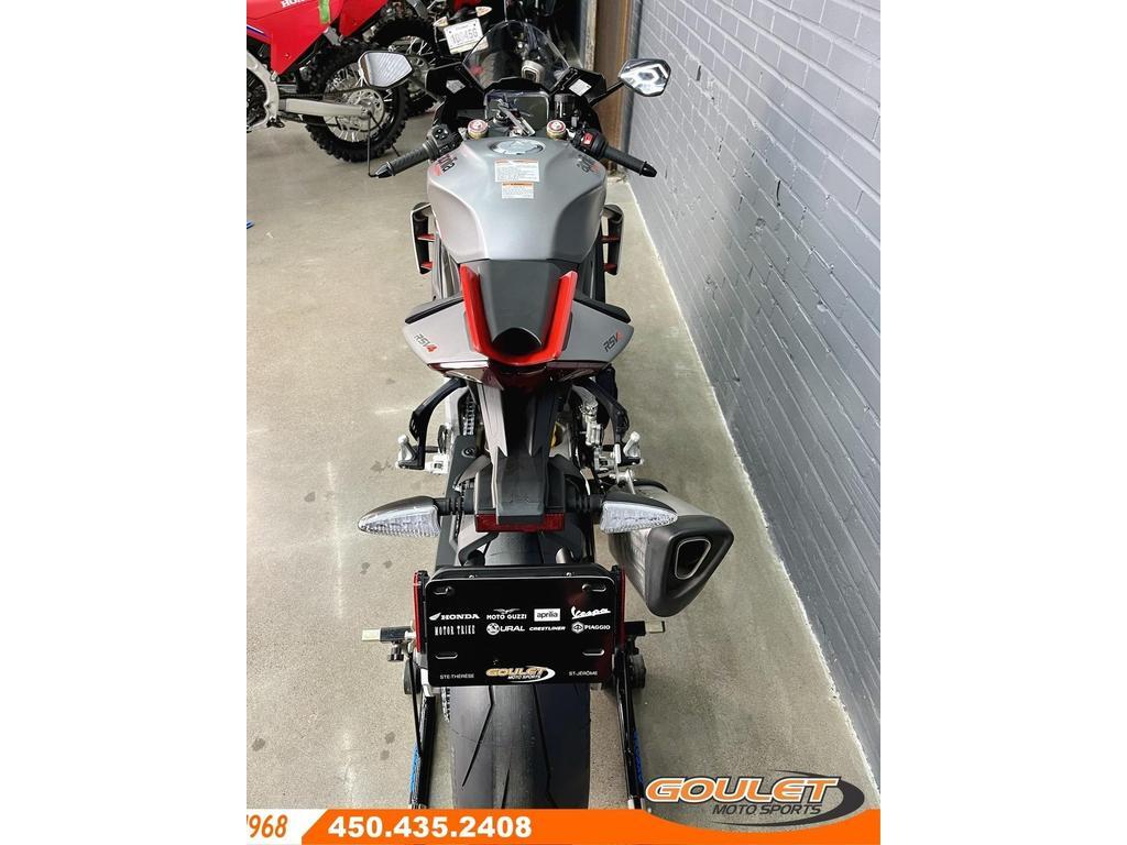 APRILIA RSV4 1100 DARK LOSAIL \*\*\* Liquidation Finale - 2600$ de rabais \*\*\* La moto Super Sportive dérivé de la course par Aprilia. La réputation de la RSV4 n'est plus à faire grâce à son moteur unique V4 de 217hp. Désormais dotée de winglets intégrés, d'une efficacité aérodynamique améliorée, associés au châssis unique d'Aprilia, son nouveau bras oscillant et son package électronique complet, la Aprilia RSV4 est la reine de la catégorie sport. - Moteur V4 de 1099cc devellopant 217hp - Freins Cornering ABS Brembo Stylema - 6 modes de conduites, 3 pour la route, 3 pour la piste - Traction Control ajustable en route (8 modes), Wheelie Control (3 modes), Frein Moteur ajustable, ABS ajustable - Quickshift Up&Down - Régulateur de vitesse (Cruise Control) - Écran couleur TFT, Bluetooth ready. - Groupe lumière avant au LED. Cette unité est chez Goulet Moto Sports de Ste-Thérèse. Téléphonez au 450.435.2408 Possibilité de financement avec plusieurs institutions financières. 2ième chance au crédit disponible. Financement spécial Aprilia disponible sur prix PDSF Goulet Moto Sports est votre concessionnaire moto depuis 1968. Fier représentant officiel des marques HONDA, APRILIA, MOTO GUZZI, VESPA, PIAGGIO, KTM, NIU, SURRON et URAL pour le grand Montréal. Nous avons un énorme choix de moto usagés inspectées par nos professionnels. 2 adresses pour vous servir, soit à Sainte-Thérèse (450.435.2408) et Saint-Jérôme (450.431.6622). Goulet Moto Sports ne peut être tenu responsable d'une omission, d'un délai ou d'une erreur de transcription de l'information. Le prix affiché reflète la condition de l'unité. Pour différentes raisons les prix peuvent différer de ceux indiqués en ligne. Les données sont affichées à titre indicatif seulement et ne peuvent être considérées comme une information contractuelle. Nous vous encourageons vivement à nous consulter pour plus de détails avant de vous déplacer. Des frais tels que taxes, immatriculation, administrations ou autres peuvent s'appliquer. Se compare à une BMW S1000RR, Ducati Panigale, Yamaha R1, Suzuki GSX1000R, Honda CBR100RR, Kawasaki ZX-10 Essence, Transmission: Manuelle, 6 vitesses, Système de refroidissement: Refroidi au liquide, 4 cylindres, 217.0 CV, 1099.0 CC, Garantie: 2 ANS ---------------------- APRILIA RSV4 1100 DARK LOSAIL \*\*\* TRANSPORT AND PREPARATION INCLUDED IN THE PRICE \*\*\* The Super Sportive motorcycle derived from racing by Aprilia. The reputation of the RSV4 is second to none thanks to its unique 217hp V4 engine. Now featuring integrated winglets, improved aerodynamic efficiency, combined with Aprilia's unique chassis, new swingarm and full electronics package, the Aprilia RSV4 is queen of the sport class. - 1099cc V4 engine developing 217hp - ABS Brembo Stylema cornering brakes - 6 driving modes, 3 for the road, 3 for the track - Traction Control adjustable on the road (8 modes), Wheelie Control (3 modes), Adjustable Engine Brake, Adjustable ABS - Quickshift Up&Down - Cruise control (Cruise Control) - TFT color display, Bluetooth ready. - LED front light group. This unit is at Goulet Moto Sports in Ste-Thérèse. Call 450.435.2408 Possibility of financing with several financial institutions. 2nd chance credit available. Aprilia Finance not available for this promotion. Goulet Moto Sports has been your motorcycle dealer since 1968. Proud official representative of the HONDA, APRILIA, MOTO GUZZI, VESPA, PIAGGIO, KTM, NIU, SURRON and URAL brands for greater Montreal. We have a huge selection of used motorcycles inspected by our professionals. 2 addresses to serve you, in Sainte-Thérèse (450.435.2408) and Saint-Jérôme (450.431.6622). Goulet Moto Sports cannot be held responsible for any omission, delay or transcription error in the information. The displayed price reflects the condition of the unit. For various reasons the prices may differ from those indicated online. The data is displayed for information purposes only and cannot be considered as contractual information. We strongly encourage you to consult us for more details before you travel. Charges such as taxes, registration, administration or others may apply. Comparable to a une BMW S1000RR, Ducati Panigale, Yamaha R1, Suzuki GSX1000R, Honda CBR100RR, Kawasaki ZX-10 Gasoline, Transmission: Manual, 6 speeds, Cooling System: Liquid cooling, 4 cylinders, 217.0 HP, 1099.0 CC, Warranty: 2 ANS