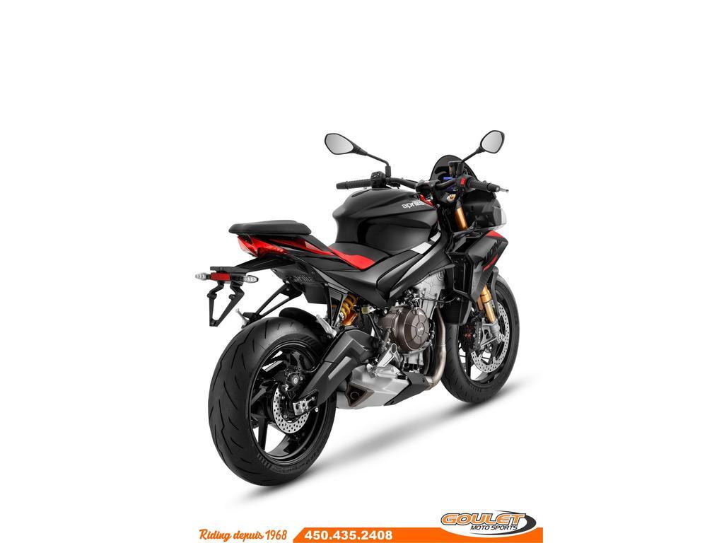 APRILIA TUONO 660 FACTORY - DARK BANSHEEE \*\*\* FRAIS DE TRANSPORT ET PRÉPARATION INCLUS DANS LE PRIX \*\*\* La version Factory de la Tuono 660 emprunte des équipements de la RS660 comme le quickshift ou la centrale d'inertie 6 axes IMU, en plus d'avoir une suspension et un amortisseur plus performant avec plus de possibilité d'ajustements. - Le nouveau bicylindre de 660 cm3 avec une puissance record de 105 cv et un couple incroyablement élevé.- - Commandes avec rétroéclairage LED: Les boutons sont désormais rétroéclairés, - Amortisseur SACHS avec réservoir séparé est réglable en compression, détente et précharge. - Suspension avant Kayaba est aussi ajustable (compression, rebound damping et pre-load) - Système APRC, modes de conduite, Contrôle de traction ajustable, Anti-wheelie, frein moteur, cruise control - Nouveau Tableau de bord couleur TFT 5pc, Bluetooth ready - Groupe optique avant à 3 éléments, tous équipés de LED. - Nouveau carénage aérodynamique avec effet downforce - Position de conduite plus confortable. Cette unité est chez Goulet Moto Sports de Ste-Thérèse. Téléphonez au 450.435.2408 Possibilité de financement avec plusieurs institutions financières. 2ième chance au crédit disponible. Financement spécial de Aprilia disponible sur prix PDSF. Goulet Moto Sports est votre concessionnaire moto depuis 1968. Fier représentant officiel des marques HONDA, APRILIA, MOTO GUZZI, VESPA, PIAGGIO, KTM, NIU, SURRON et URAL pour le grand Montréal. Nous avons un énorme choix de moto usagés inspectées par nos professionnels. 2 adresses pour vous servir, soit à Sainte-Thérèse (450.435.2408) et Saint-Jérôme (450.431.6622). Goulet Moto Sports ne peut être tenu responsable d'une omission, d'un délai ou d'une erreur de transcription de l'information. Le prix affiché reflète la condition de l'unité. Pour différentes raisons les prix peuvent différer de ceux indiqués en ligne. Les données sont affichées à titre indicatif seulement et ne peuvent être considérées comme une information contractuelle. Nous vous encourageons vivement à nous consulter pour plus de détails avant de vous déplacer. Des frais tels que taxes, immatriculation, administrations ou autres peuvent s'appliquer. Se compare à une Ducati Monster, Yamaha MT-07, Kawasaki Ninja 650, Honda CB650R, Suzuki GSX750F ou une KTM Duke 890 Essence, Transmission: Manuelle, 6 vitesses, Système de refroidissement: Refroidi au liquide, 2 cylindres, 105.0 CV, 660.0 CC, Garantie: 2 ans ---------------------- APRILIA TUONO 660 FACTORY - DARK BANSHEEE \*\*\* SHIPPING AND PREPARATION INCLUDED IN THE PRICE \*\*\* The Factory version of the Tuono 660 borrows features from the RS660, such as the quickshift and the 6-axis IMU, in addition to featuring more efficient suspension and shock absorbers with greater adjustment options. - The new 660cc twin-cylinder engine with a record 105 hp and incredibly high torque. - LED-backlit controls: The buttons are now backlit. - SACHS shock absorber with separate reservoir is adjustable for compression, rebound, and preload. - Kayaba front suspension is also adjustable (compression, rebound damping, and preload). - APRC system, riding modes, adjustable traction control, anti-wheelie, engine braking. cruise control - New 5inch TFT color instrument panel, Bluetooth ready. - 3-element front headlight cluster, all equipped with LEDs. - New aerodynamic fairing with downforce effect. - More comfortable riding position. This unit is at Goulet Moto Sports in Ste-Thérèse. Call 450.435.2408. Financing available with several financial institutions. Second chance credit available. Special Aprilia financing available on MSRP. Goulet Moto Sports has been your motorcycle dealership since 1968. Proud official representative of HONDA, APRILIA, MOTO GUZZI, VESPA, PIAGGIO, KTM, NIU, SURRON, and URAL for the greater Montreal area. We have a huge selection of used motorcycles inspected by our professionals. We have two locations to serve you: Sainte-Thérèse (450.435.2408) and Saint-Jérôme (450.431.6622). Goulet Moto Sports cannot be held responsible for any omissions, delays, or transcription errors. The price displayed reflects the condition of the unit. For various reasons, prices may differ from those shown online. The data displayed is for informational purposes only and should not be considered contractually binding. We strongly encourage you to contact us for more details before your visit. Fees such as taxes, registration, administration, and other charges may apply. Compare to a Ducati Monster, Yamaha MT-07, Kawasaki Ninja 650, Honda CB650R, Suzuki GSX750F, or a KTM Duke 890 Gasoline, Transmission: Manual, 6 speeds, Cooling System: Liquid cooling, 2 cylinders, 105.0 HP, 660.0 CC, Warranty: 2 ans