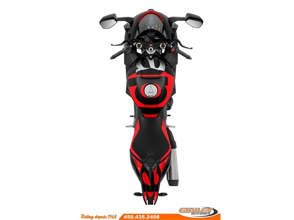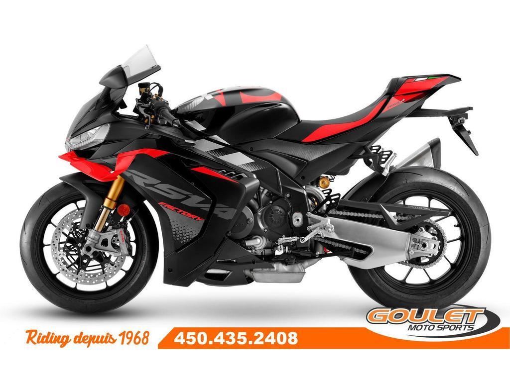 APRILIA RSV4 V4 1100 FACTORY - DARK KRAKEN \*\*\* TRANSPORT ET PRÉPARATION INCLUS DANS LE PRIX \*\*\* La moto Super Sportive dérivé de la course par Aprilia. La réputation de la RSV4 n'est plus à faire grâce à son moteur unique V4 de 220hp. Désormais dotée de winglets intégrés, d'une efficacité aérodynamique améliorée, associés au châssis unique d'Aprilia, son nouveau bras oscillant et son package électronique complet, la Aprilia RSV4 est la reine de la catégorie sport. - Moteur amélioré : Nouveau moteur V4 de 1099 cm³, offrant 220 chevaux pour une performance maximale sur route et circuit. - Suspension Öhlins Smart EC 2.0 : Suspension électronique de haute performance, permettant un ajustement en temps réel. - Système APRC de dernière génération : Nouvelles versions des systèmes Traction Control, Wheelie Control, et Launch Control - Design retravaillé : Nouveau carénage plus aérodynamique et un look plus agressif, améliorant la stabilité à haute vitesse. - Écran TFT couleur : Nouveau tableau de bord avec interface Bluetooth - Freins Brembo avec Cornering ABS : Technologie avancée pour une sécurité maximale en courbe et un freinage ultra-réactif. - Batterie lithium-ion : Moins de poids et meilleure performance énergétique. - Nouveaux modes de conduite : Cinq modes sélectionnables pour adapter la moto à différentes conditions de conduite. - Commandes avec rétroéclairage LED : Les boutons sont désormais rétroéclairés, offrant une meilleure visibilité dans des conditions de faible éclairage. Cette unité est chez Goulet Moto Sports de Ste-Thérèse. Téléphonez au 450.435.2408 Possibilité de financement avec plusieurs institutions financières. 2ième chance au crédit disponible. Goulet Moto Sports est votre concessionnaire moto depuis 1968. Fier représentant officiel des marques HONDA, APRILIA, MOTO GUZZI, VESPA, PIAGGIO, KTM, NIU, SURRON et URAL pour le grand Montréal. Nous avons un énorme choix de moto usagés inspectées par nos professionnels. 2 adresses pour vous servir, soit à Sainte-Thérèse (450.435.2408) et Saint-Jérôme (450.431.6622). Goulet Moto Sports ne peut être tenu responsable d'une omission, d'un délai ou d'une erreur de transcription de l'information. Le prix affiché reflète la condition de l'unité. Pour différentes raisons les prix peuvent différer de ceux indiqués en ligne. Les données sont affichées à titre indicatif seulement et ne peuvent être considérées comme une information contractuelle. Nous vous encourageons vivement à nous consulter pour plus de détails avant de vous déplacer. Des frais tels que taxes, immatriculation, administrations ou autres peuvent s'appliquer. Se compare avantageusement à une BMW S1000RR, Ducati Panigale, Yamaha R1, Kawasaki ZX-10, Suzuki GSXR1000 Essence, Transmission: Manuelle, 6 vitesses, Système de refroidissement: Refroidi au liquide, 4 cylindres, 220.0 CV, 1099.0 CC, Garantie: 2 ANS ---------------------- APRILIA RSV4 V4 1100 FACTORY - DARK KRAKEN \*\*\* TRANSPORT AND PREPARATION INCLUDED IN THE PRICE \*\*\* The Super Sport bike derived from racing by Aprilia. The reputation of the RSV4 is well established thanks to its unique V4 engine producing 220hp. Now equipped with integrated winglets, improved aerodynamic efficiency, combined with Aprilia's unique chassis, new swingarm, and a complete electronic package, the Aprilia RSV4 is the queen of the sport category. - Improved Engine: New 1099 cm³ V4 engine, delivering 220 horsepower for maximum performance on both road and track. - Öhlins Smart EC 2.0 Suspension: High-performance electronic suspension for real-time adjustments. - Next-Generation APRC System: New versions of Traction Control, Wheelie Control, and Launch Control systems, - New Electronics: Enhanced Ride-by-Wire system for finer throttle and power management. - Redesigned Aesthetics: New, more aerodynamic fairing with a more aggressive look, improving stability at high speeds. - Color TFT Display: New dashboard with Bluetooth interface for modern connectivity and more precise riding information. - Brembo Brakes with Cornering ABS: Advanced technology for maximum safety in corners and ultra-responsive braking. - Lithium-ion Battery: Lighter weight and better energy performance. - New Riding Modes: Five selectable modes to adapt the bike to different riding conditions. - Backlit LED Command Buttons: Buttons are now backlit for better visibility in low light conditions. This unit is available at Goulet Moto Sports in Ste-Thérèse. Call us at 450-435-2408. Financing options available through multiple financial institutions. 2nd chance credit available. Goulet Moto Sports has been your motorcycle dealer since 1968. Proud official representative of the brands HONDA, APRILIA, MOTO GUZZI, VESPA, PIAGGIO, KTM, NIU, SURRON, and URAL for the Greater Montreal area. We offer a huge selection of professionally inspected used motorcycles. We have two locations to serve you: Sainte-Thérèse (450-435-2408) and Saint-Jérôme (450-431-6622). Goulet Moto Sports cannot be held responsible for omissions, delays, or transcription errors. The displayed price reflects the condition of the unit. Prices may differ for various reasons from what is indicated online. The information is provided for guidance purposes only and should not be considered contractual. We strongly recommend that you consult us for more details before coming in. Additional fees such as taxes, registration, administration, or others may apply. Compares favorably to a BMW S1000RR, Ducati Panigale, Yamaha R1, Kawasaki ZX-10, Suzuki GSXR1000 Gasoline, Transmission: Manual, 6 speeds, Cooling System: Liquid cooling, 4 cylinders, 220.0 HP, 1099.0 CC, Warranty: 2 ANS
