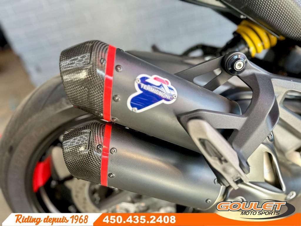 DUCATI SUPERSPORT 937 PLUS 2022 – TERMIGNONI & TUNE DUCATI \*\*\* Équipé de l'échappement Temignoni et du mappig de Ducati, kit Evotech et mini flasher. Parebrise avant - Impéccable et prête à partir \*\*\* Avec son moteur Testastretta 11° de 937cc, cette Supersport 937 Plus développe 110hp et 93Nm de couple, livrant une expérience de conduite sportive mais confortable. Cette unité est équipée d'un échappement Termignoni Performance et de la tune officielle Ducati, offrant une sonorité unique et des performances optimisées. - Moteur bicylindre Testastretta 11° 937cc – 110hp / 93Nm - Échappement Termignoni Performance - Tune officielle Ducati (ECU optimisée) - Suspension entièrement ajustable - Quickshifter up/down - Écran TFT couleur haute résolution - Modes de conduite (Sport, Touring, Urban) - Contrôle de traction (DTC), anti-wheeling (DWC) - Freins Brembo haut de gamme avec ABS cornering Bosch - Éclairage full LED avec DRL Cette unité est chez Goulet Moto Sports de Ste-Thérèse. Téléphonez au 450.435.2408 Possibilité de financement avec plusieurs institutions financières. 2ième chance au crédit disponible. Goulet Moto Sports est votre concessionnaire moto depuis 1968. Fier représentant officiel des marques HONDA, APRILIA, MOTO GUZZI, VESPA, PIAGGIO, KTM, NIU, SURRON et URAL pour le grand Montréal. Nous avons un énorme choix de moto usagés inspectées par nos professionnels. 2 adresses pour vous servir, soit à Sainte-Thérèse (450.435.2408) et Saint-Jérôme (450.431.6622). Goulet Moto Sports ne peut être tenu responsable d'une omission, d'un délai ou d'une erreur de transcription de l'information. Le prix affiché reflète la condition de l'unité. Pour différentes raisons les prix peuvent différer de ceux indiqués en ligne. Les données sont affichées à titre indicatif seulement et ne peuvent être considérées comme une information contractuelle. Nous vous encourageons vivement à nous consulter pour plus de détails avant de vous déplacer. Des frais tels que taxes, immatriculation, administrations ou autres peuvent s'appliquer. Se compare à Aprilia Tuono 660, Honda CB650R, Suzuki GSX750F, Yamaha MT-09, KTM Duke 890 Balance de garantie ou 1 mois Garantie: 1 mois ---------------------- DUCATI SUPERSPORT 937 PLUS 2022 \*\*\* Equipped with a Temignoni exhaust and Ducati mappig, Evotech kit, and mini flasher. Front windshield - Immaculate and ready to go \*\*\* With its 937cc Testastretta 11° engine, this Supersport 937 Plus develops 110 hp and 93 Nm of torque, delivering a sporty yet comfortable riding experience. This unit is equipped with a Termignoni Performance exhaust and official Ducati tune, offering a unique sound and optimized performance. - 937cc Testastretta 11° twin-cylinder engine – 110hp / 93Nm - Termignoni Performance exhaust - Official Ducati tune (optimized ECU) - Fully adjustable suspension - Quickshifter up/down - High-resolution color TFT display - Riding modes (Sport, Touring, Urban) - Traction control (DTC), anti-wheelie (DWC) - Premium Brembo brakes with Bosch cornering ABS - Full LED lighting with DRL This unit is at Goulet Moto Sports in Ste-Thérèse. Call 450.435.2408 Financing available with several financial institutions. Second chance credit available. Goulet Moto Sports has been your motorcycle dealership since 1968. We are a proud official representative of HONDA, APRILIA, MOTO GUZZI, VESPA, PIAGGIO, KTM, NIU, SURRON, and URAL brands in Greater Montreal. We have a huge selection of used motorcycles inspected by our professionals. We have two locations to serve you: Sainte-Thérèse (450.435.2408) and Saint-Jérôme (450.431.6622). Goulet Moto Sports cannot be held responsible for any omission, delay, or transcription error. The price displayed reflects the condition of the unit. For various reasons, prices may differ from those indicated online. The data displayed is for informational purposes only and should not be considered contractual information. We strongly encourage you to contact us for more details before visiting. Fees such as taxes, registration, administration, and other charges may apply. Compare to Aprilia Tuono 660, Honda CB650R, Suzuki GSX750F, Yamaha MT-09, KTM Duke 890 Balance of warranty or 1 month Warranty: 1 mois